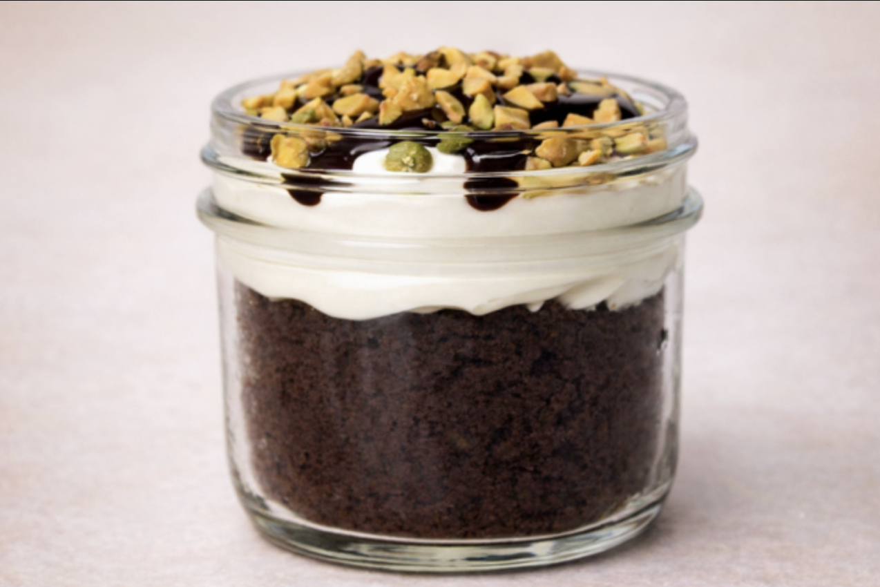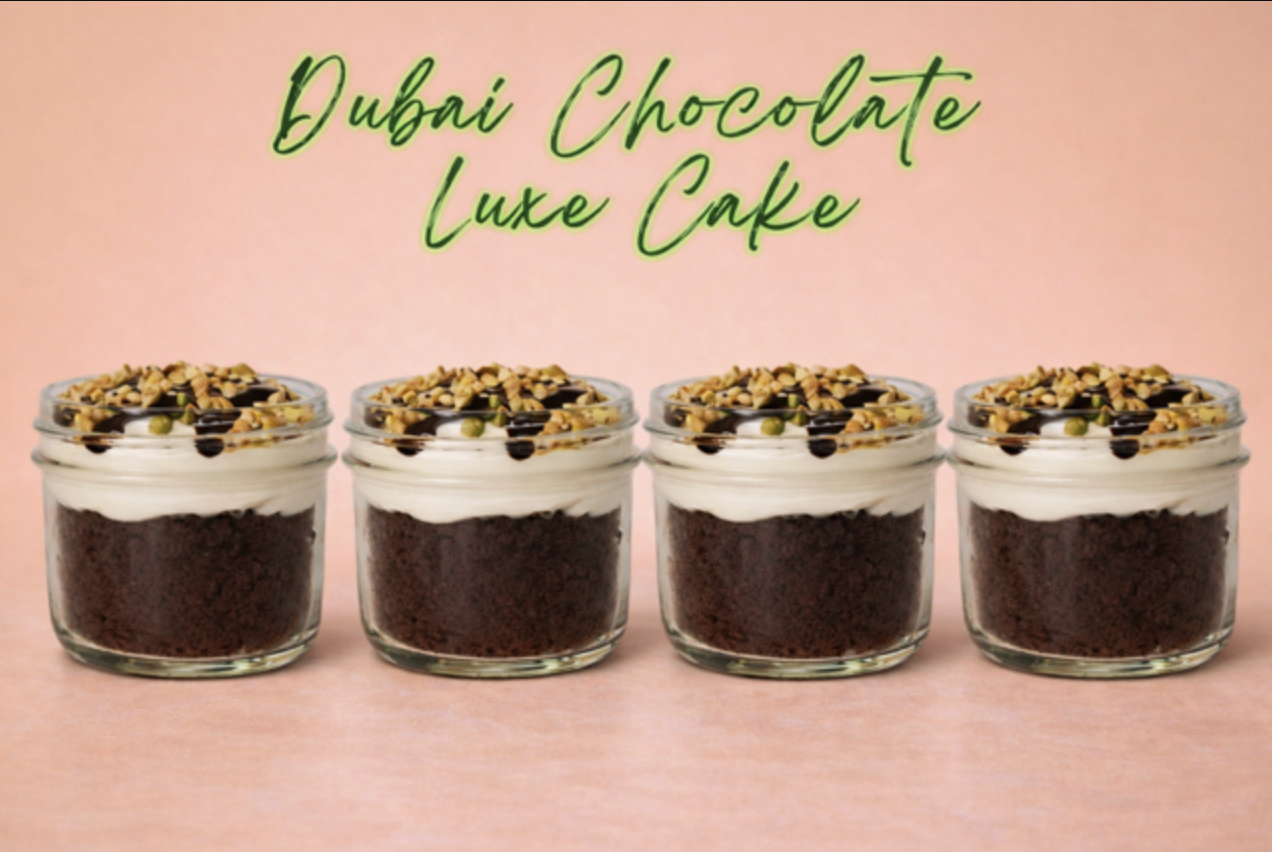 Mini pack of Dubai Chocolate Luxe Cake flavor cake in a jar